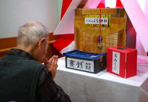 まずはべにばな神社にて初詣!皆様真剣にお祈りしていますね…やはり健康祈願でしょうか⁇