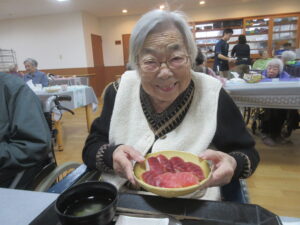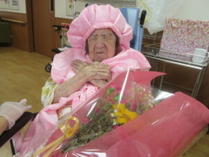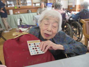 ビンゴ大会の合間には来年の4月で100歳になるゲスト様を早いですがみんなでお祝いしました。