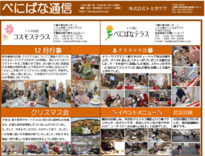 明けましておめでとうございます。ケアマネージャー芳山です。睦月を迎え、寒の入りとともに寒さが一段と厳しくなってまいりました。インフルエンザや風邪が相変わらず流行っております、外出の際は感染予防にご留意ください。